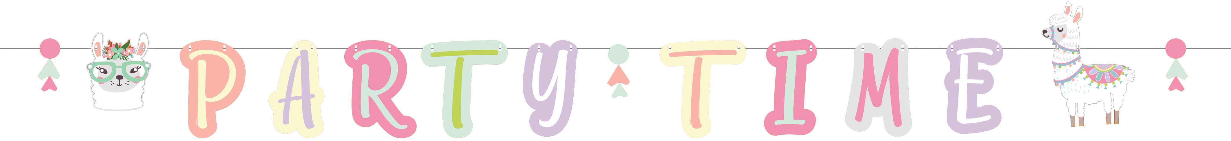 Es ist Party Time! Ein kleiner Blick hoch zur Lama Party Girlande und schwumps weiß ein jeder, dass die Party steigen kann. Die Girlande wird von süßen Lama Motiven geziert sowie dem Party Time Schriftzug. Insgesamt ist sie 2,4m lang.