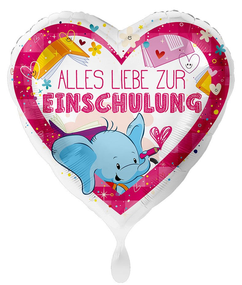 Endlich darfst du lesen, schreiben und rechnen lernen! Der kleine Elefant wünscht dir dafür alles Liebe zur Einschulung. Ein solch bedeutungsvoller Tag lässt sich super mit unserem pinken Einschulung Herzballon Elefant feiern. Insgesamt hat der Herzballon einen Durchmesser von 43cm.