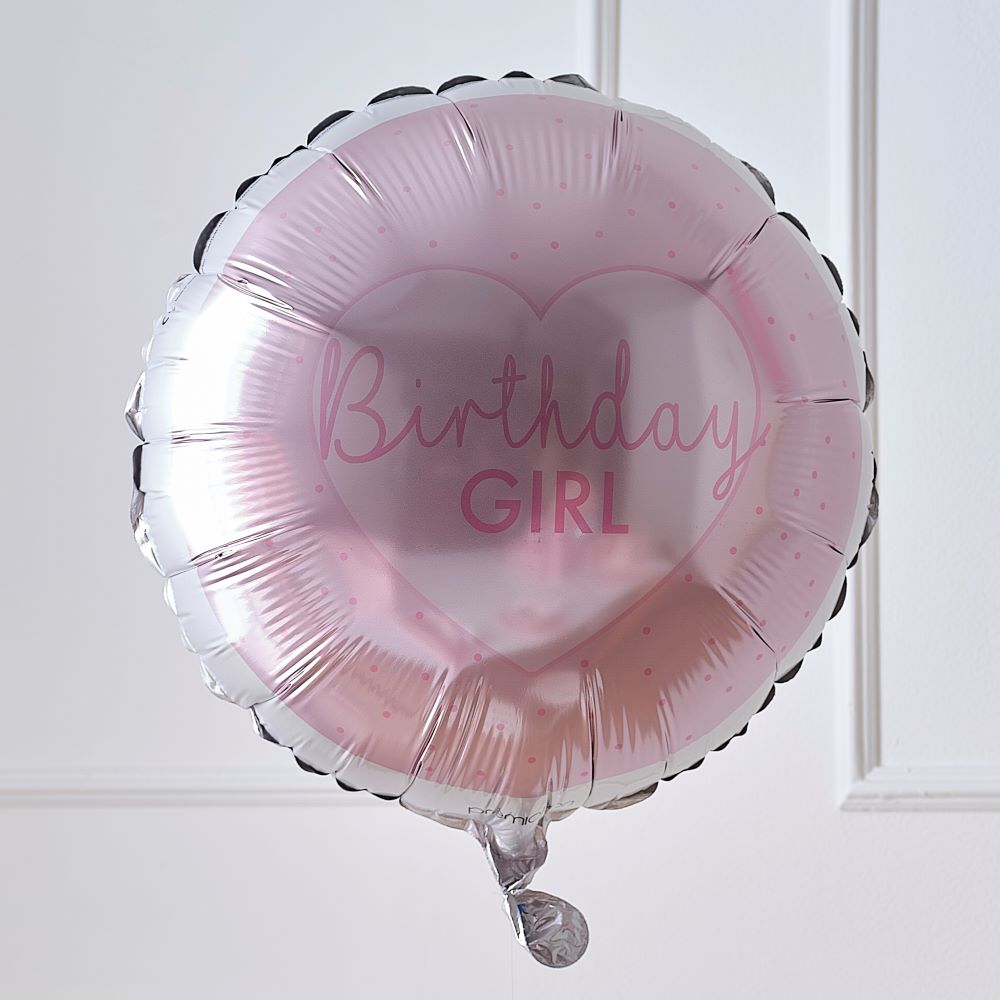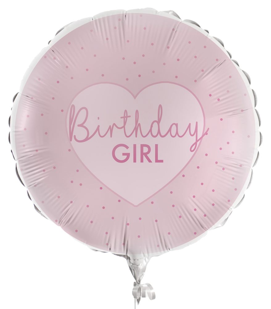 Eine super süße Dekoration oder Mitbringsel ist der Pinky Winky Geburtstags-Folienballon. Der hübsche und 43cm große Ballon in Weiß und Rosa trägt auf beiden Seiten, mittig ein Herz mit dem Schriftzug "Birthday Girl".
