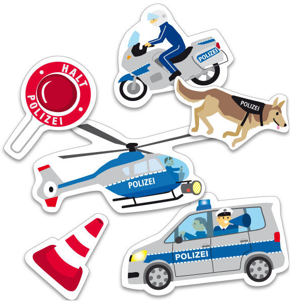 XXL Konfetti Polizei für Tisch- und Flächendekoration , 24 Stück , je 4 x 6 Motive, 300 g Karton, ca. 6 - 8 cm groß, beidseitig bedruckt und formgestanzt.