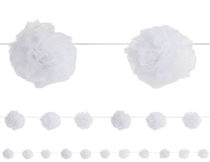 Tüll Girlande mit weißen Tüllstoff Dekobällen