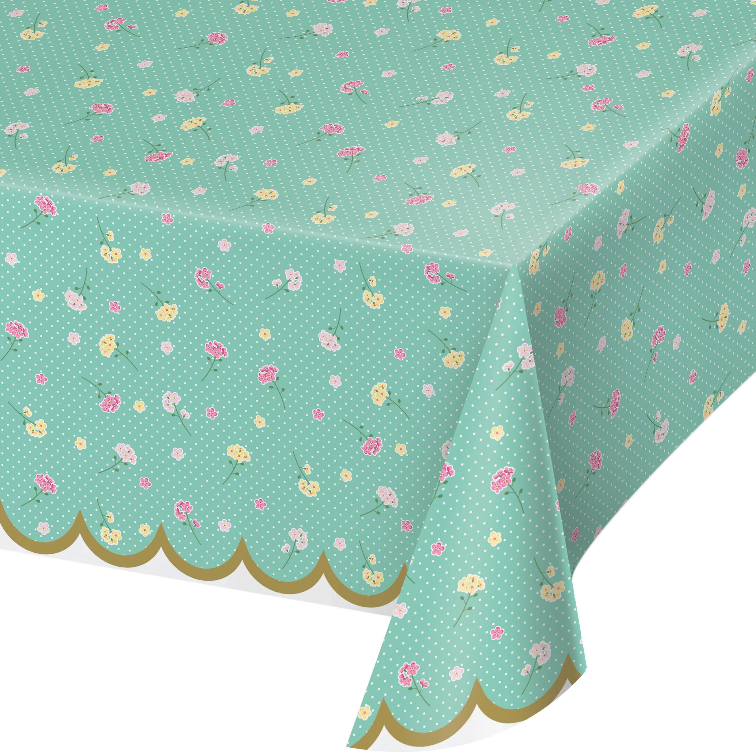Die florale Teeparty Tischdecke bringt den Frühling in dein Haus. Die 2,59 x 1,37cm große Tischdecke ist aus Kunststoff und daher ideal für fröhliche Feiern oder Kindergeburtstage, da sie nicht so empfindlich ist und sich leicht abwischen lässt.